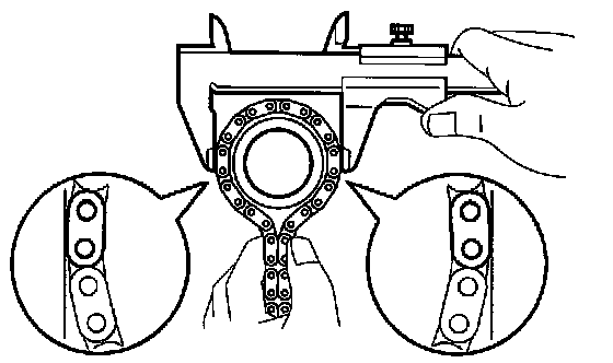 NOTICE: When measuring the diameter, vernier calipers must be in contact with the chain roller.