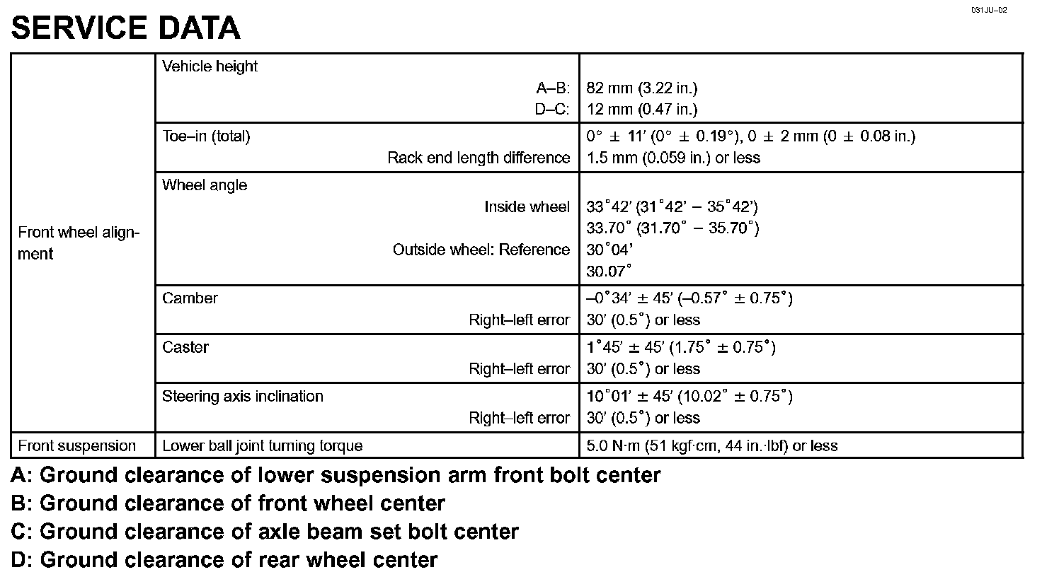 Front Suspension - Service Data: