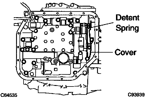 g. Temporarily install the detent spring and cover with the 2 bolts.