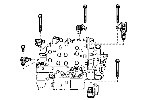 g. Remove the 5 bolts and 5 shift solenoid valves.