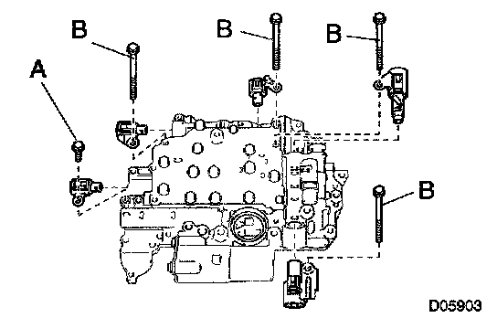 a. Install the 5 shift solenoid valves with the 5 bolts.