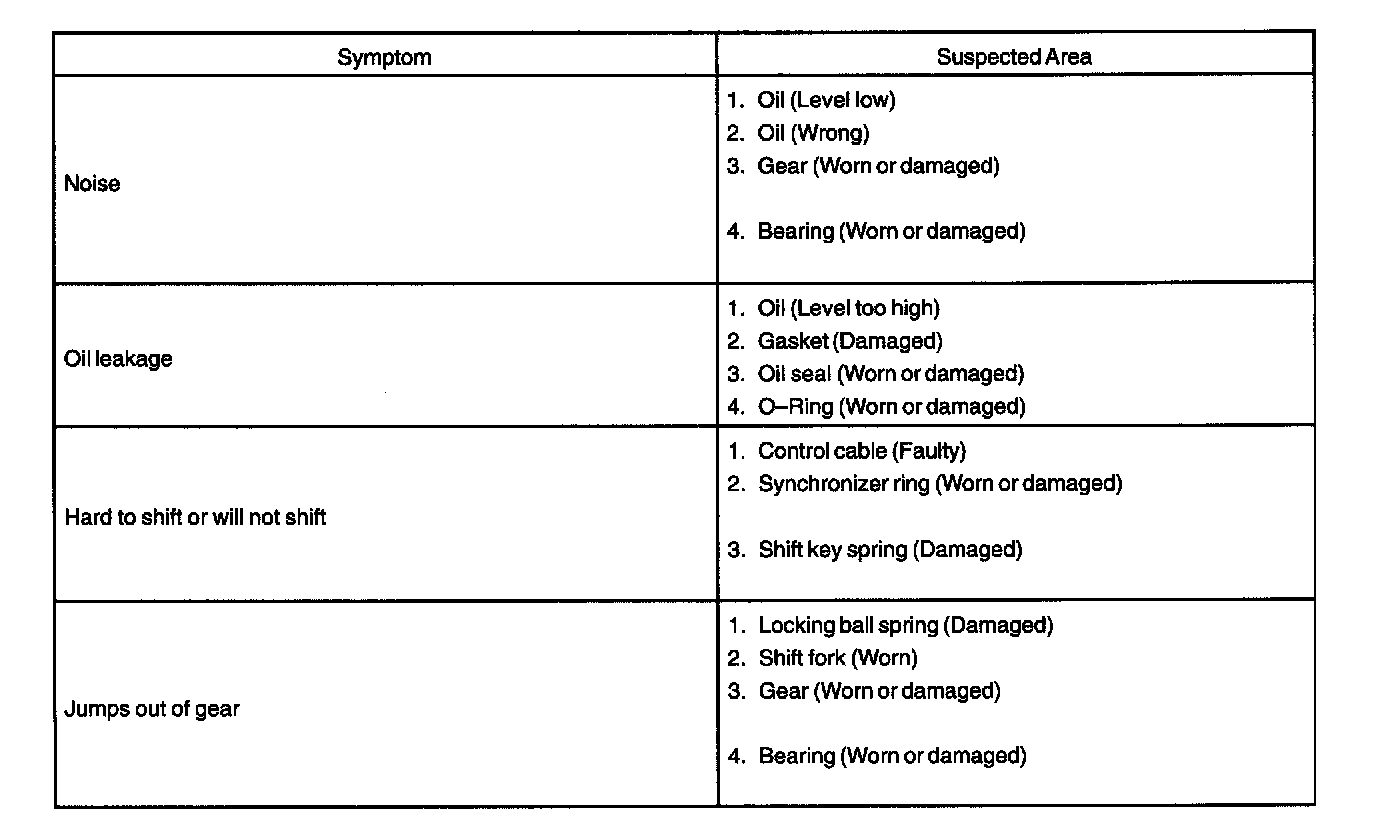 MANUAL TRANSAXLE SYSTEM (MTM)PROBLEM SYMPTOMS TABLE