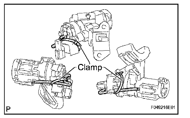 d. Manual transaxle:Secure the unlock warning switch wire harness to the steering column upper bracket with a new clamp as shown in the illustration.