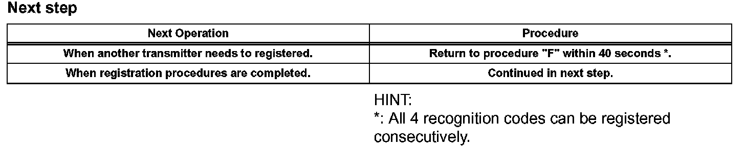 i. Remove the key from the ignition key cylinder within 40 seconds after Procedure "D" (Procedure "E").