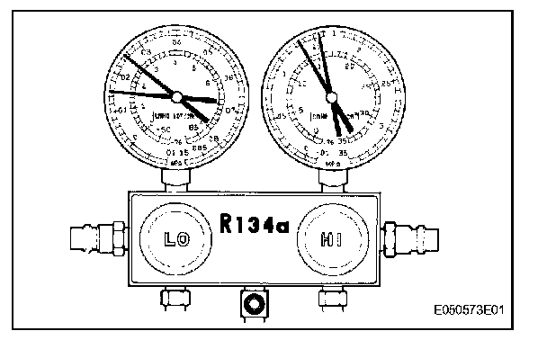 ON-VEHICLE INSPECTION1. INSPECT REFRIGERANT PRESSURE WITH MANIFOLD GAUGE SET