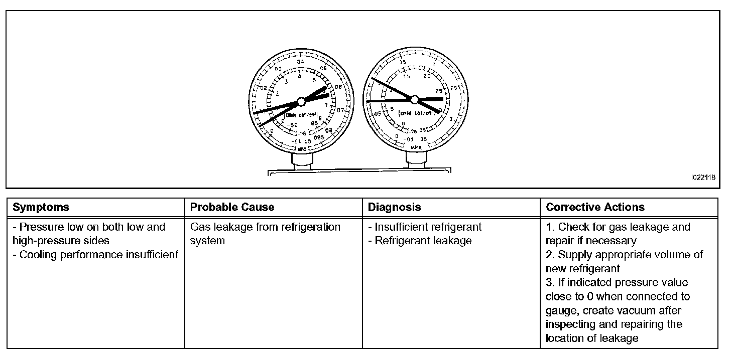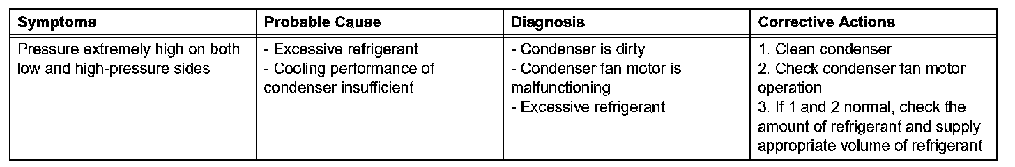 a. This method uses a manifold gauge set to locate problem areas. Read the manifold gauge pressure when these conditions are established. Test conditions:
