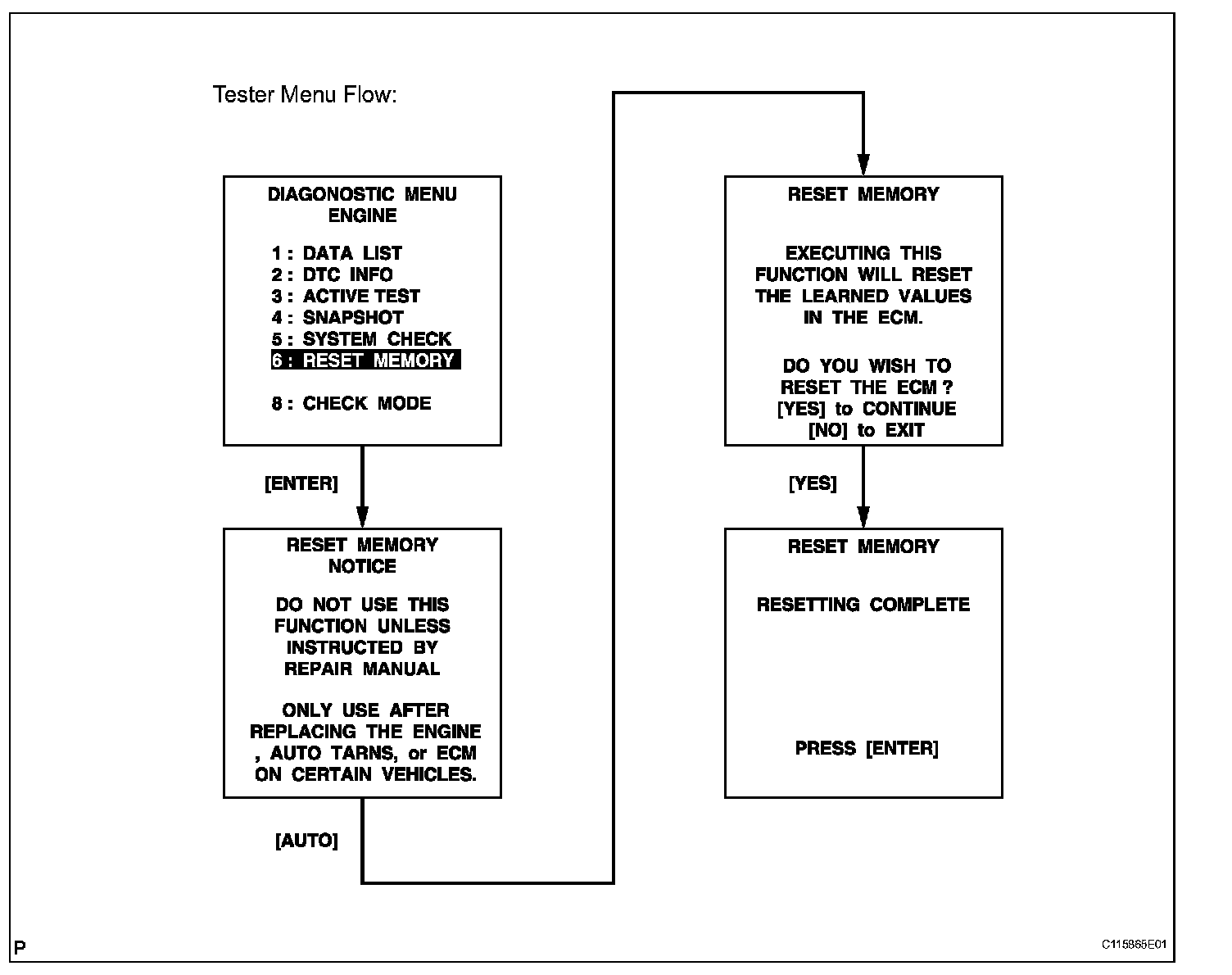 CAUTION: After performing the RESET MEMORY procedures, be sure to perform the ROAD TEST. Road Test