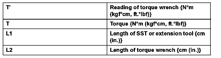 1. Use the formula below to calculate special torque values for situations where SST or an extension tool is combined with the torque wrench.