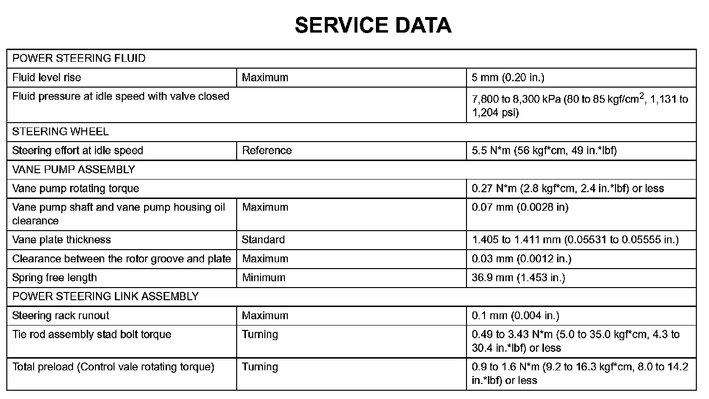 Power Steering-Service Data: