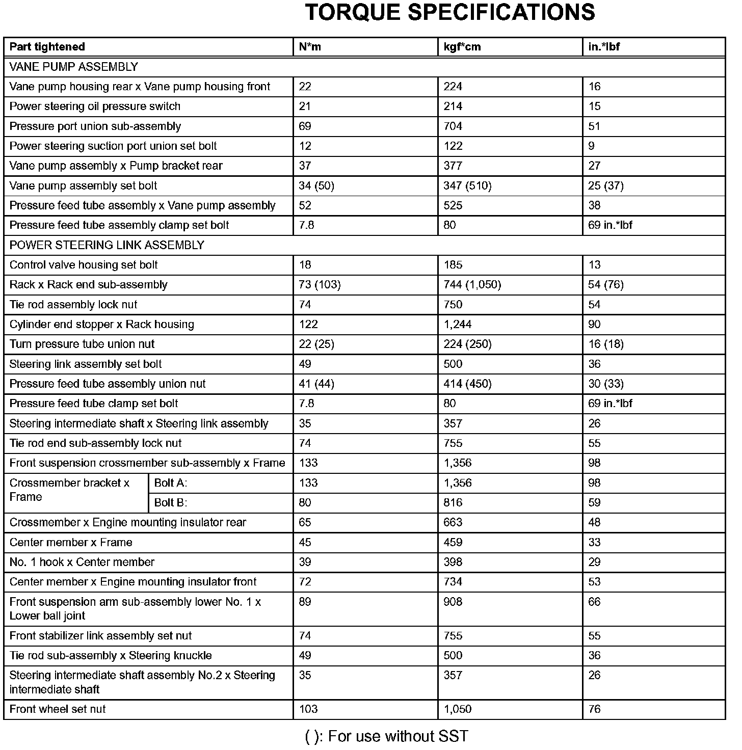 Power Steering-Torque Specifications: