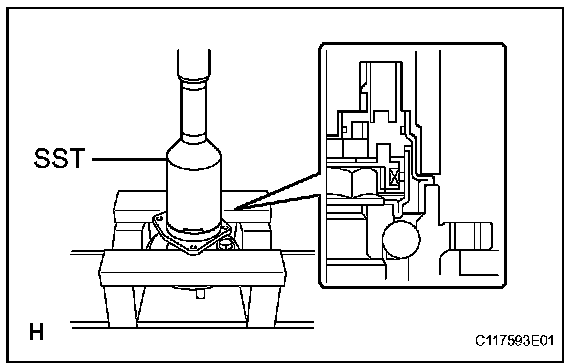 c. Using SST and a press, install the skid control sensor on the rear axle hub.