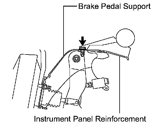 a) Remove the bolt from the brake pedal support.