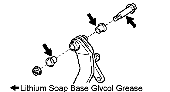 a) Apply lithium soap base glycol grease to the ends and sides of 2 new brake pedal bushes and brake pedal shaft.