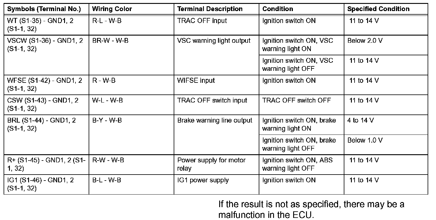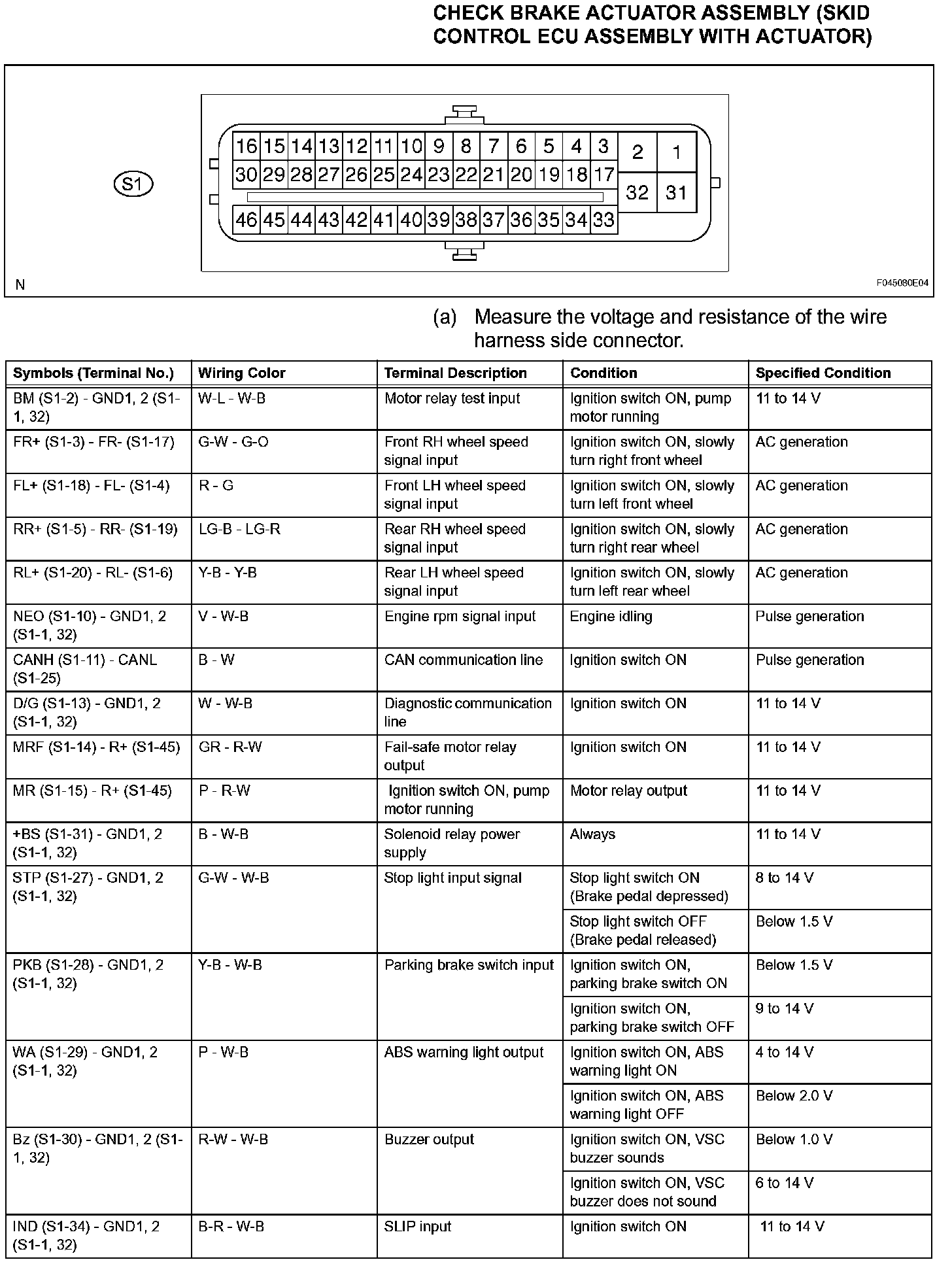 Terminals Of Control Module/Pinouts - Check Brake Actuator Assembly (Skid Control ECU Assembly With Actuator)(Part 1):