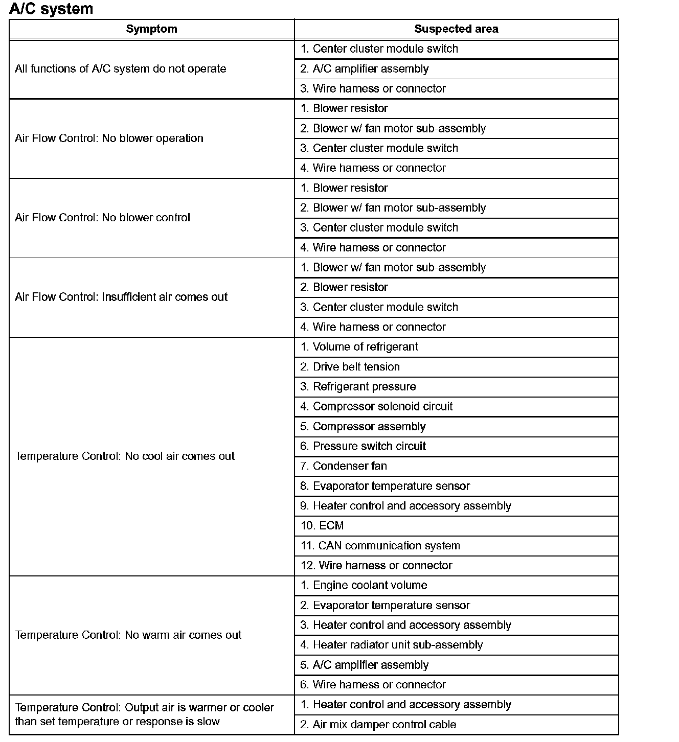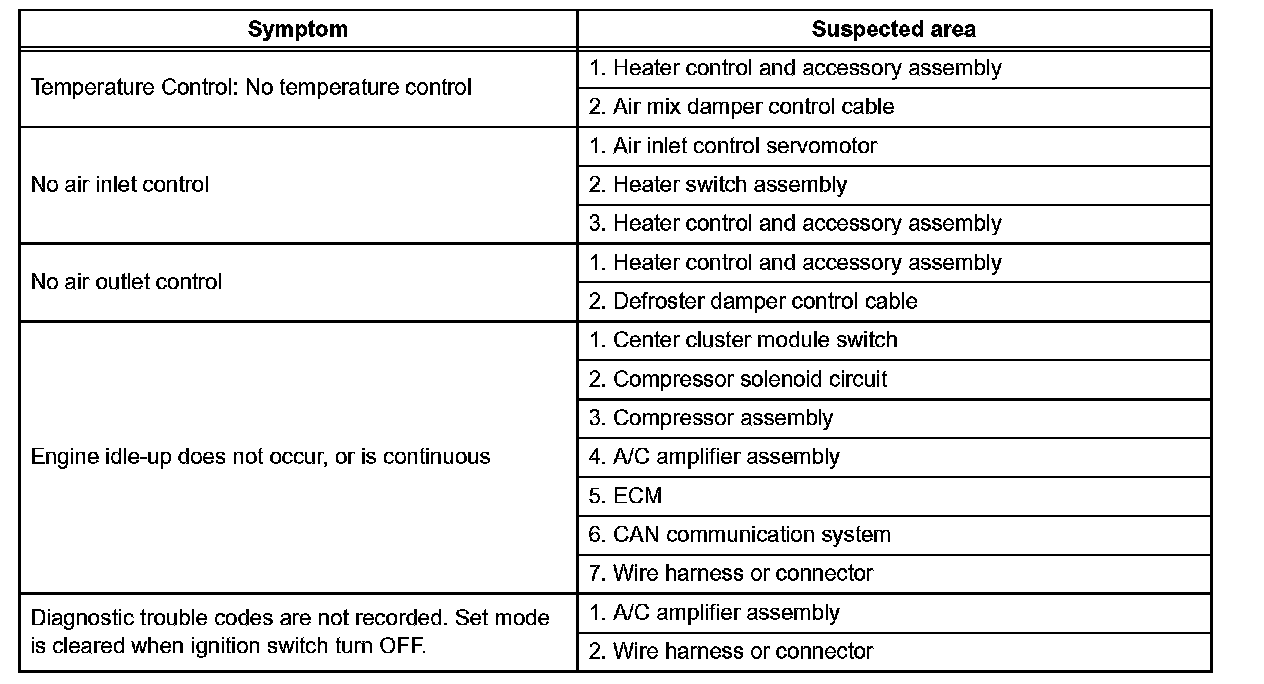 Problem Symptoms Table - A/C System (Part 2):