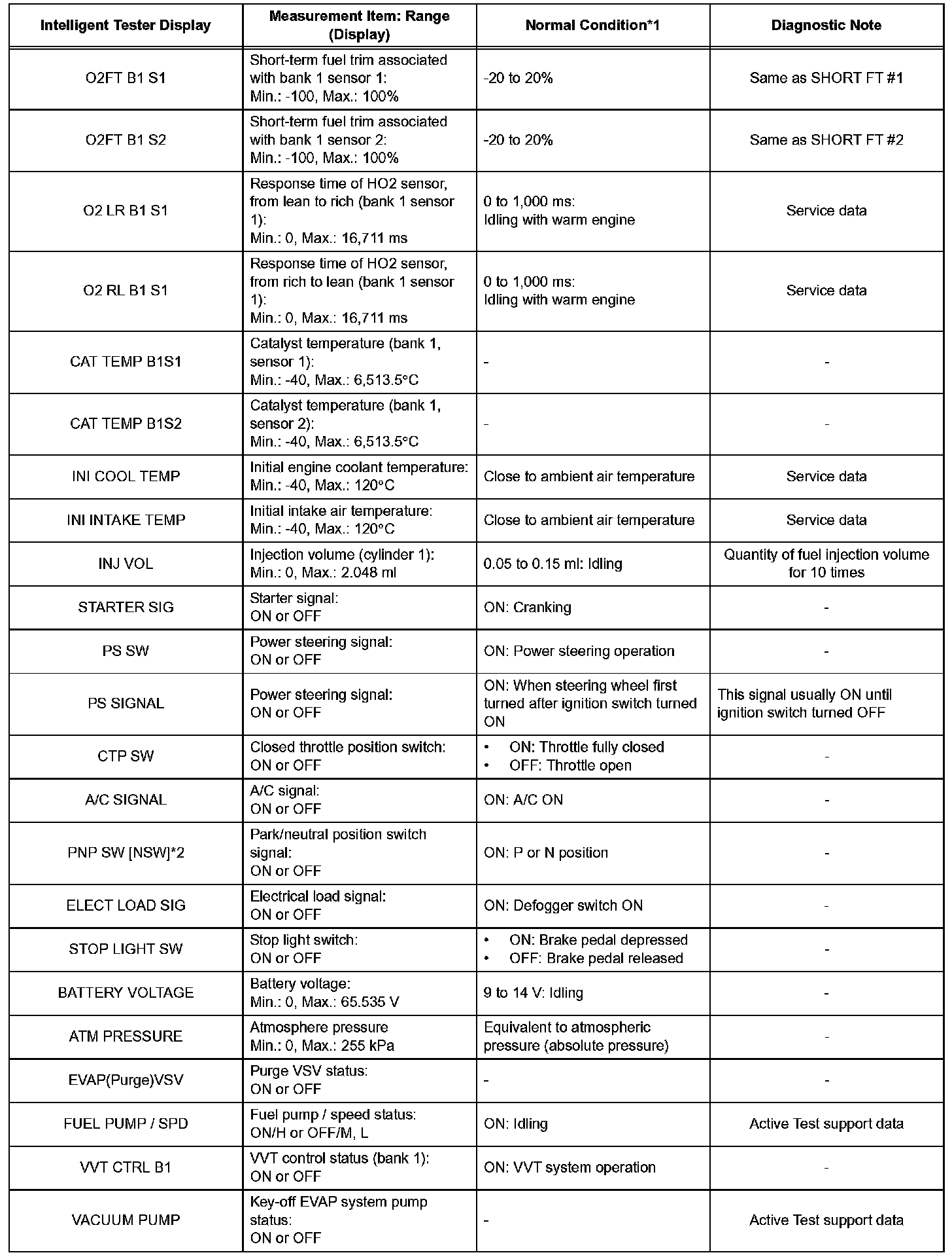 DATA LISTHINT: Using the intelligent tester's DATA LIST allows switch, sensor, actuator and other item values to be read without removing any parts. Reading the DATA LIST early in troubleshooting is one way to save time.