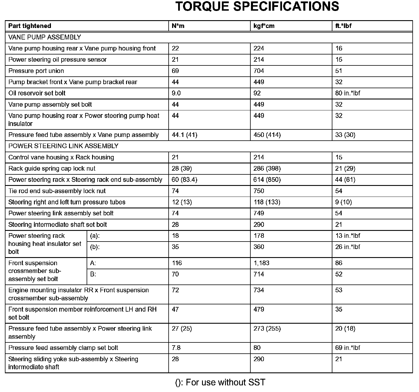 Power Steering-Torque Specifications: