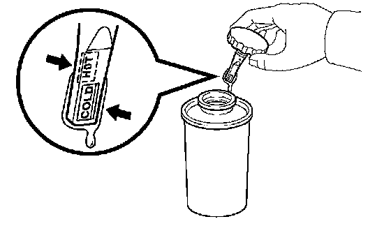 f. With the engine idling, measure the fluid level in the oil reservoir.