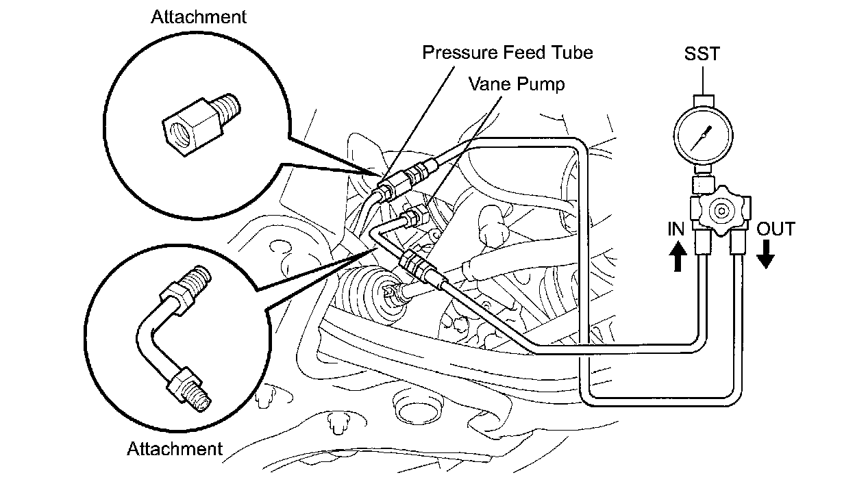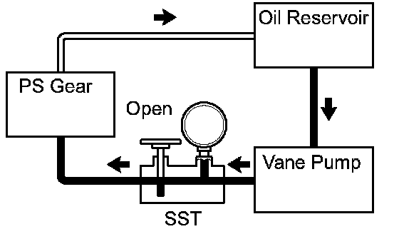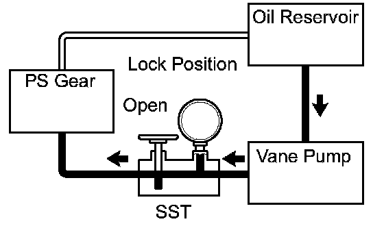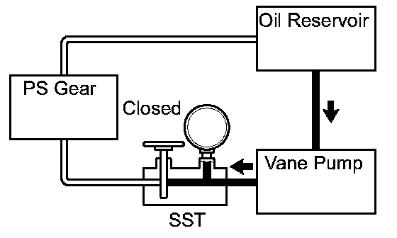 f. With the engine idling, close the valve of SST and observe the reading on SST.