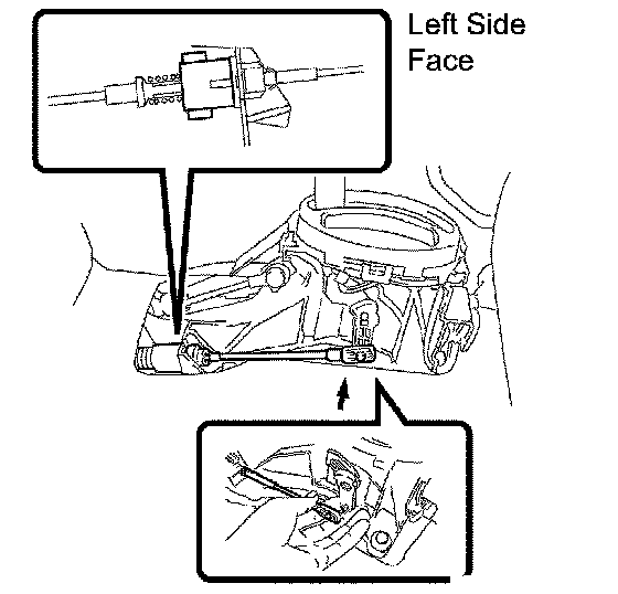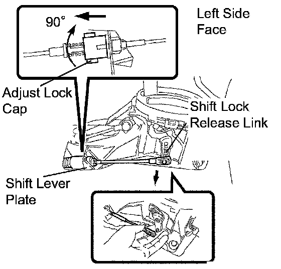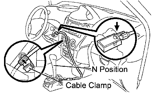^ Install the floor shift parking lock cable on the shift lever side with the ignition switch in the ACC position.