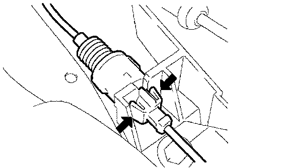b. Push the claw and disconnect the floor shift parking lock cable from the shift lock release link.