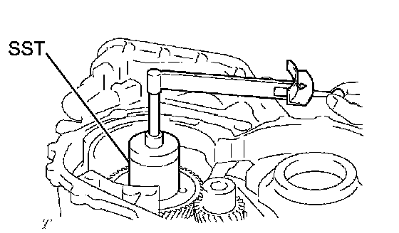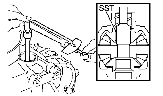 c. Using SST and a small torque wrench, measure the preload of the differential gear.