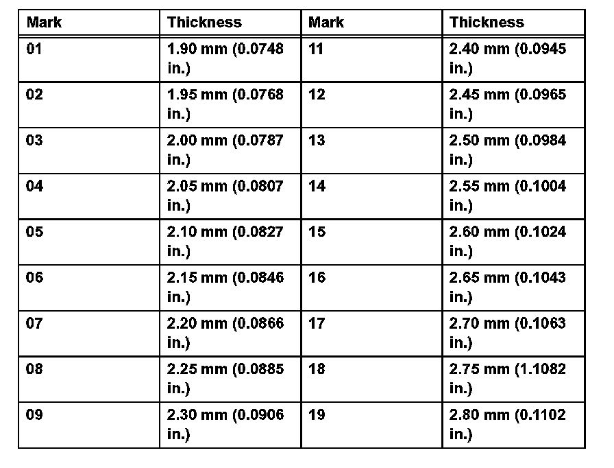 Standard pack clearance: 0.806 to 1.206 mm (0.0317 to 0.0475 inch)