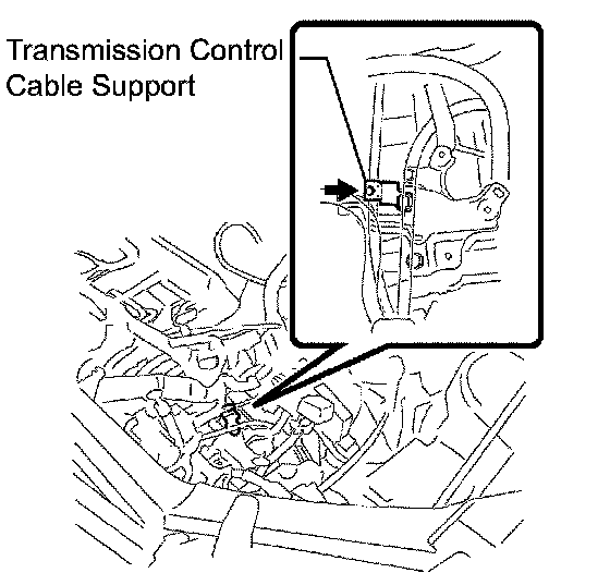 c. Connect the transmission control cable to the transmission control cable support.