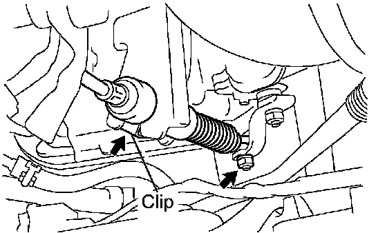 f. Remove the clip and disconnect the transmission control cable from the control cable bracket.
