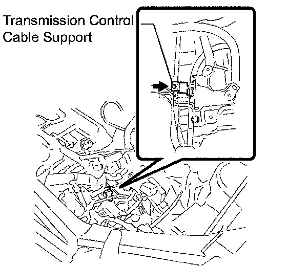 g. Disconnect the transmission control cable from the transmission control cable support.