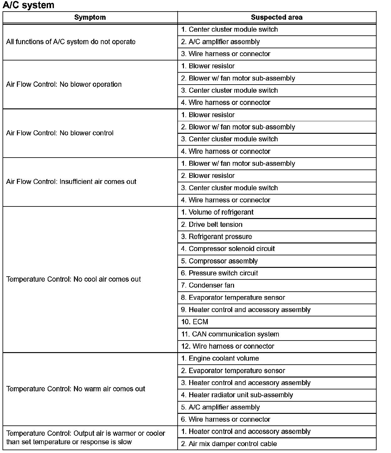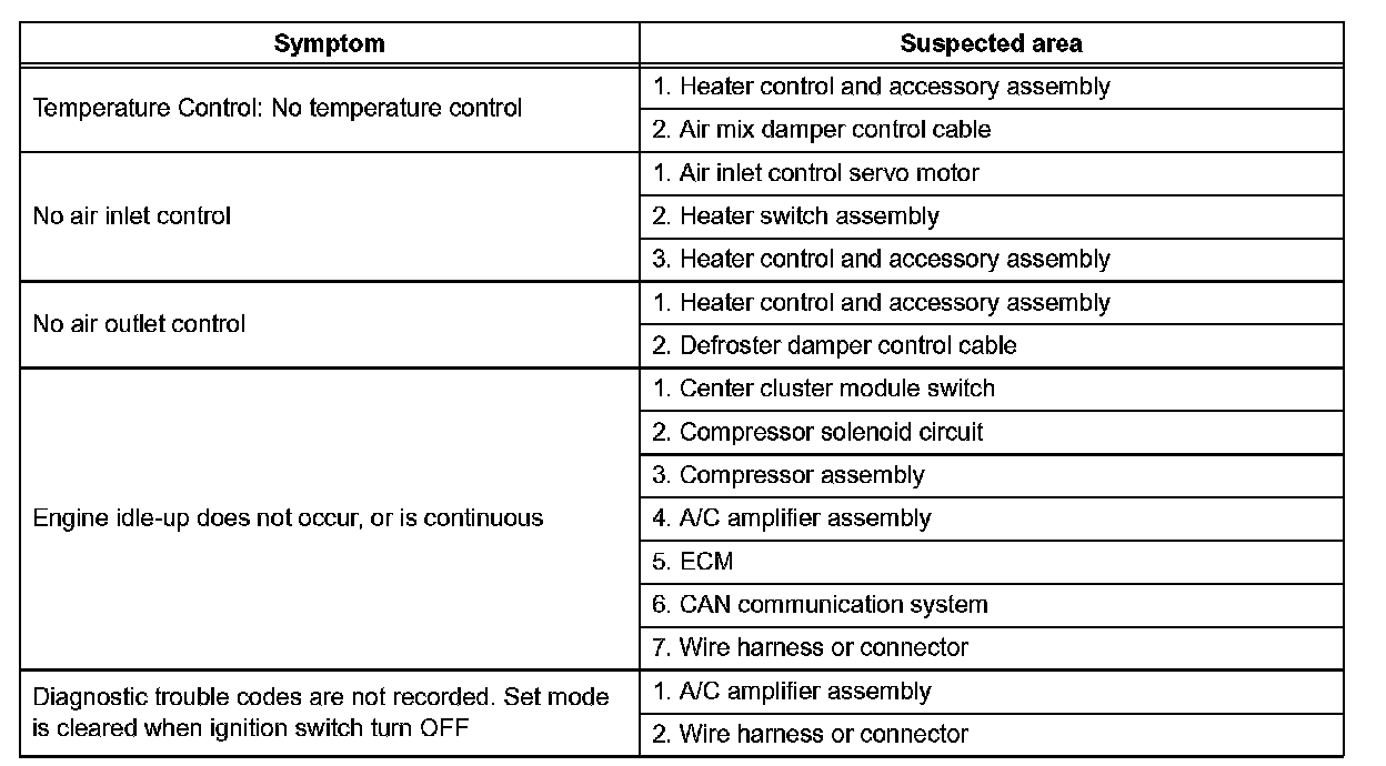 Problem Symptoms Table - A/c System (Part 2):