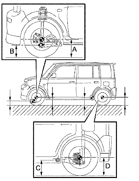 NOTICE: Before inspecting the wheel alignment, adjust the vehicle height to the specified value.