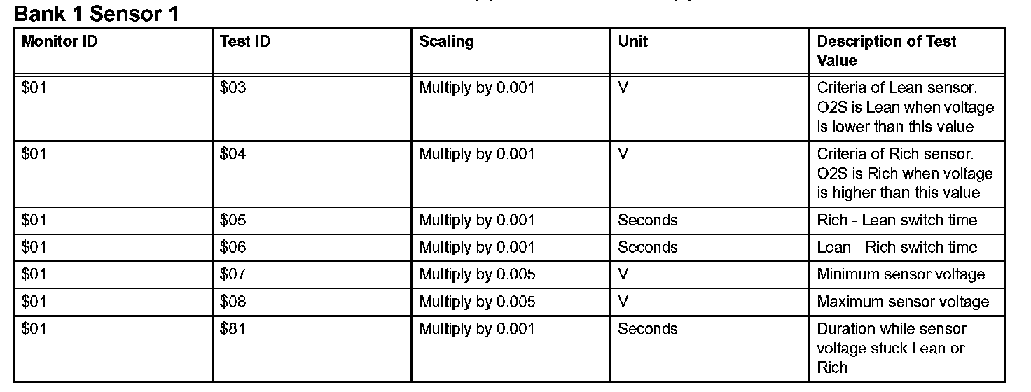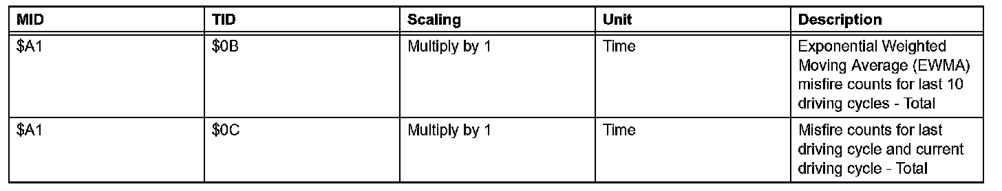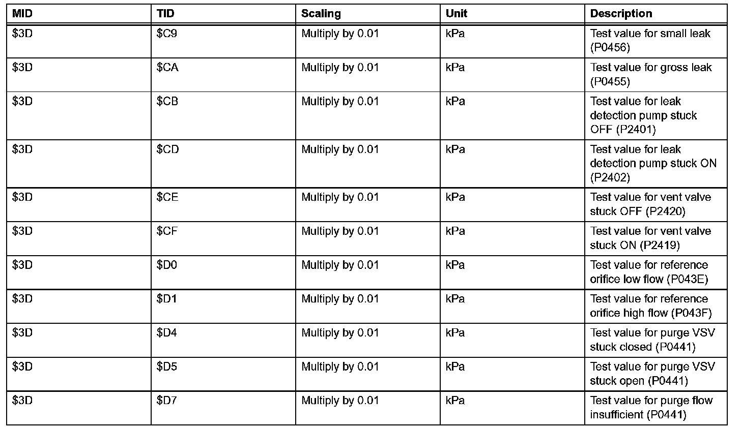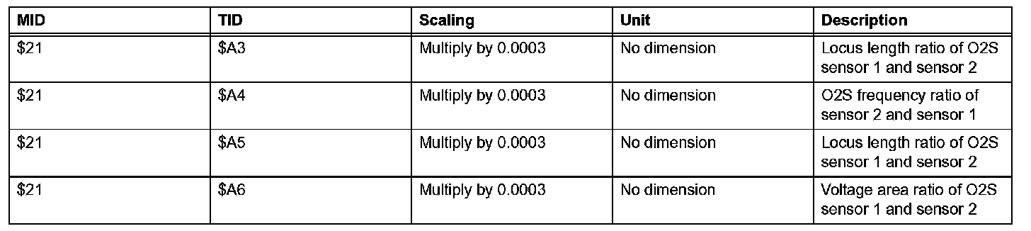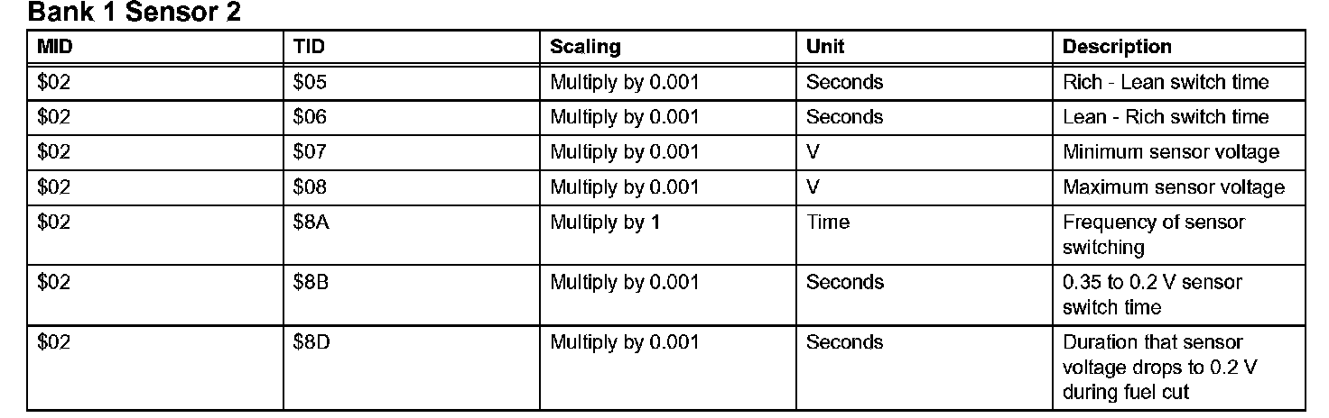 If you use a generic scan tool, multiply the test value by the scaling value listed below.