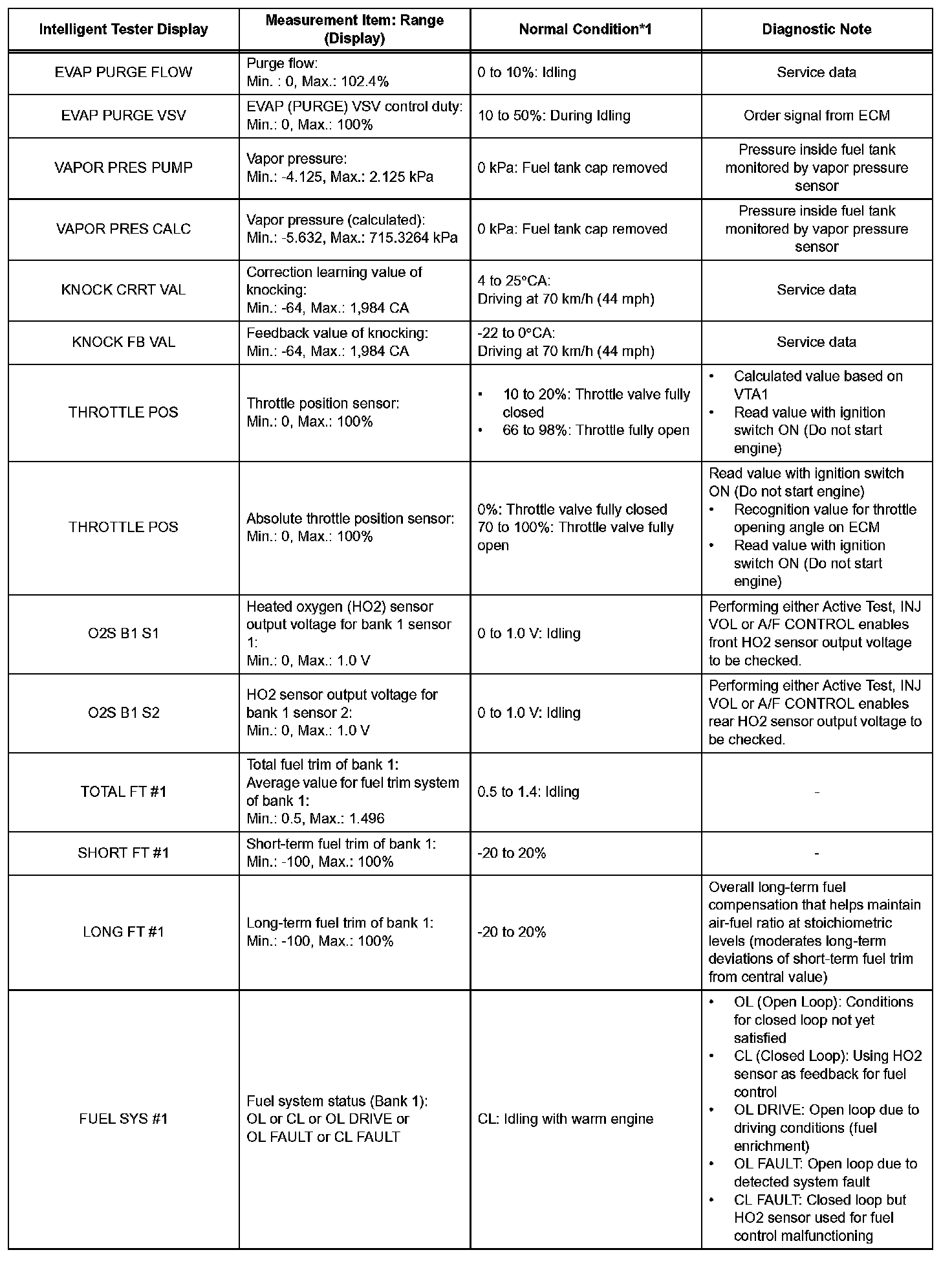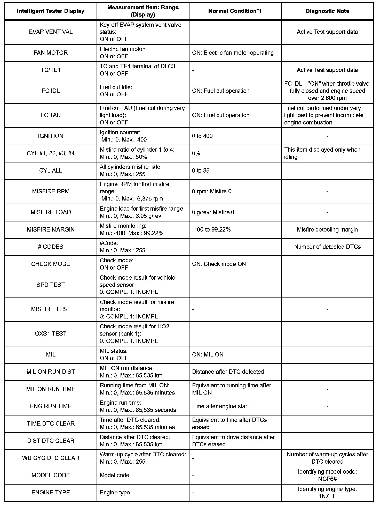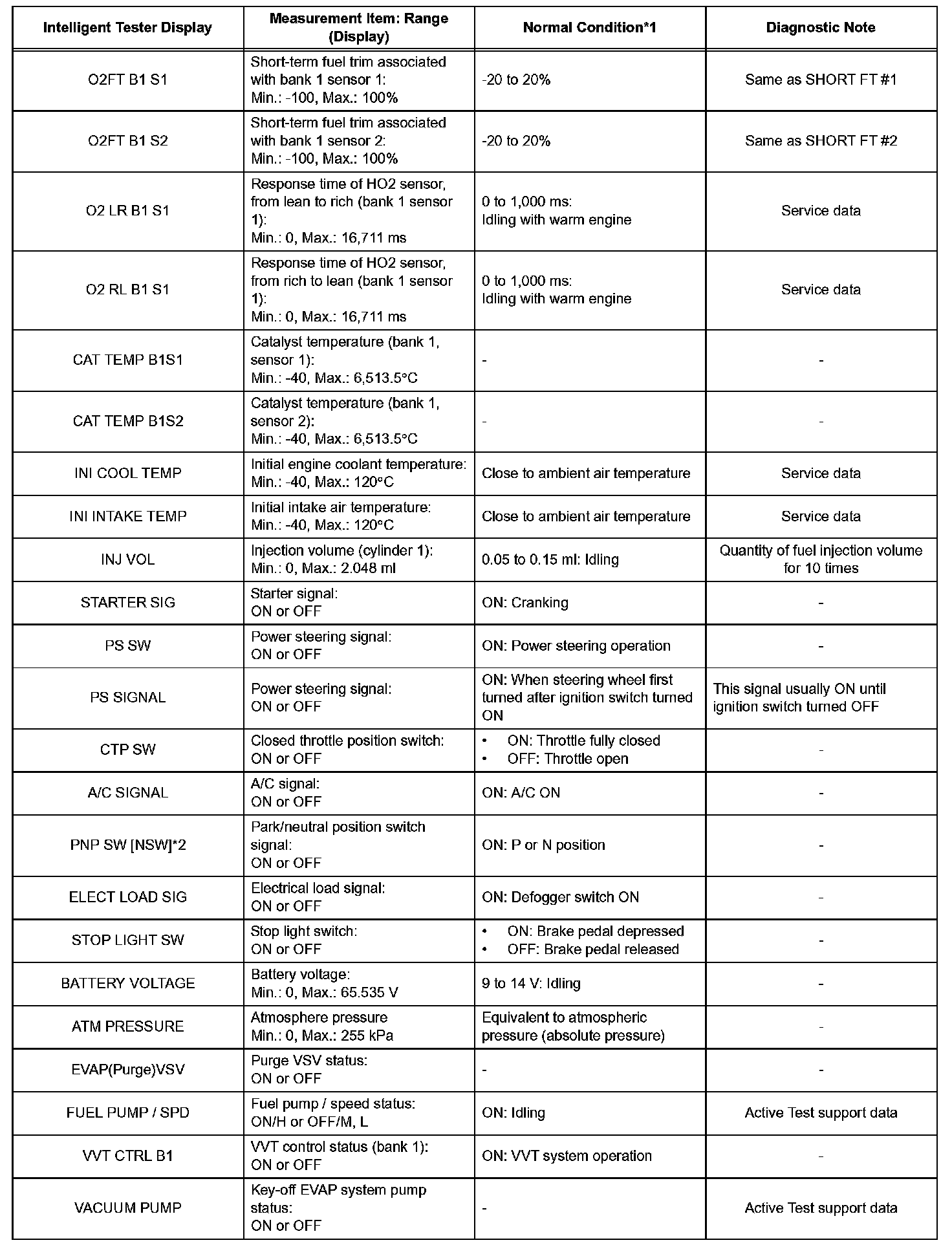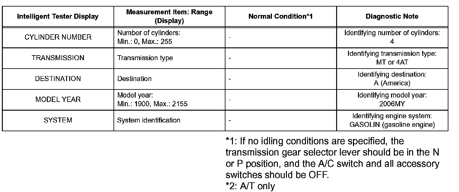 HINT: Using the intelligent tester's DATA LIST allows switch, sensor, actuator and other item values to be read without removing any parts. Reading the DATA LIST early in troubleshooting is one way to save time.