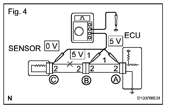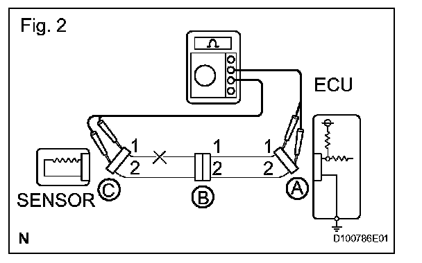 CHECK FOR OPEN CIRCUITa. For an open circuit in the wire harness in Fig. 1, check the resistance or voltage, as described.