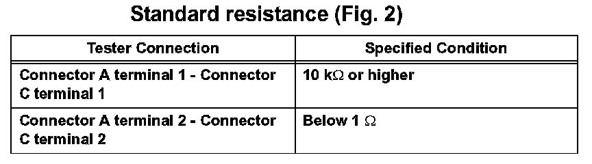 1. Disconnect connectors A and C, and measure the resistance between them.