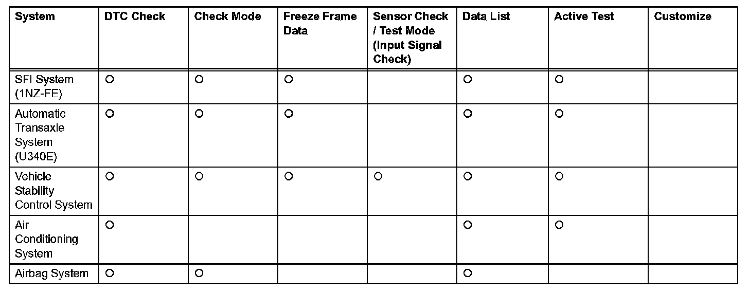 By using these functions, the problem areas can be narrowed down and troubleshooting is more effective. Diagnostic functions are incorporated in the following systems in the SCION xB.