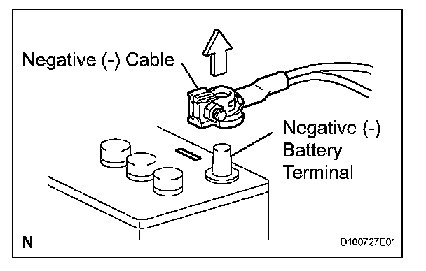 1. Before performing electronic work, disconnect the cable from the negative (-) battery terminal to prevent component and wire damage caused by accidental short circuits.
