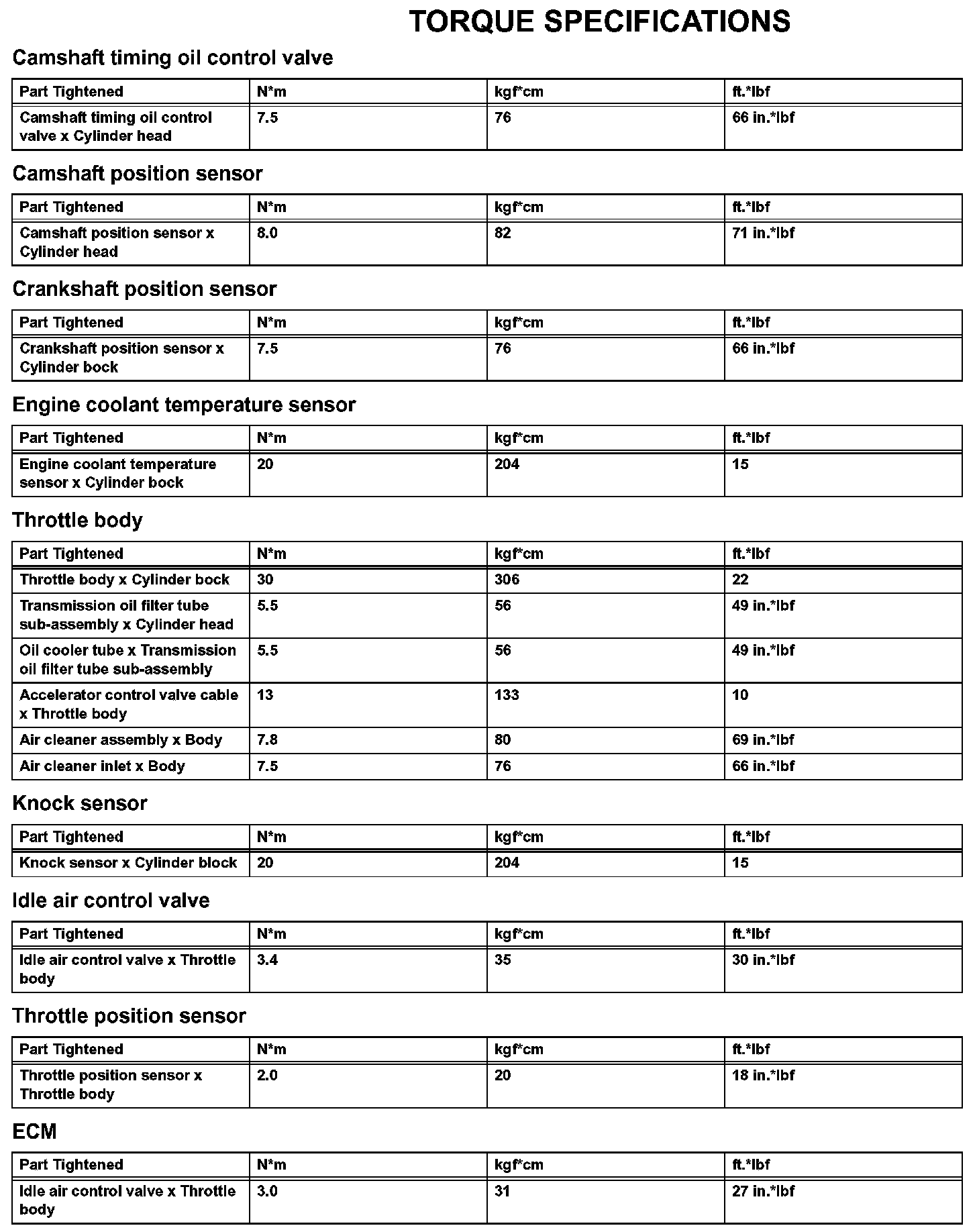 Engine Control System-Torque Specifications: