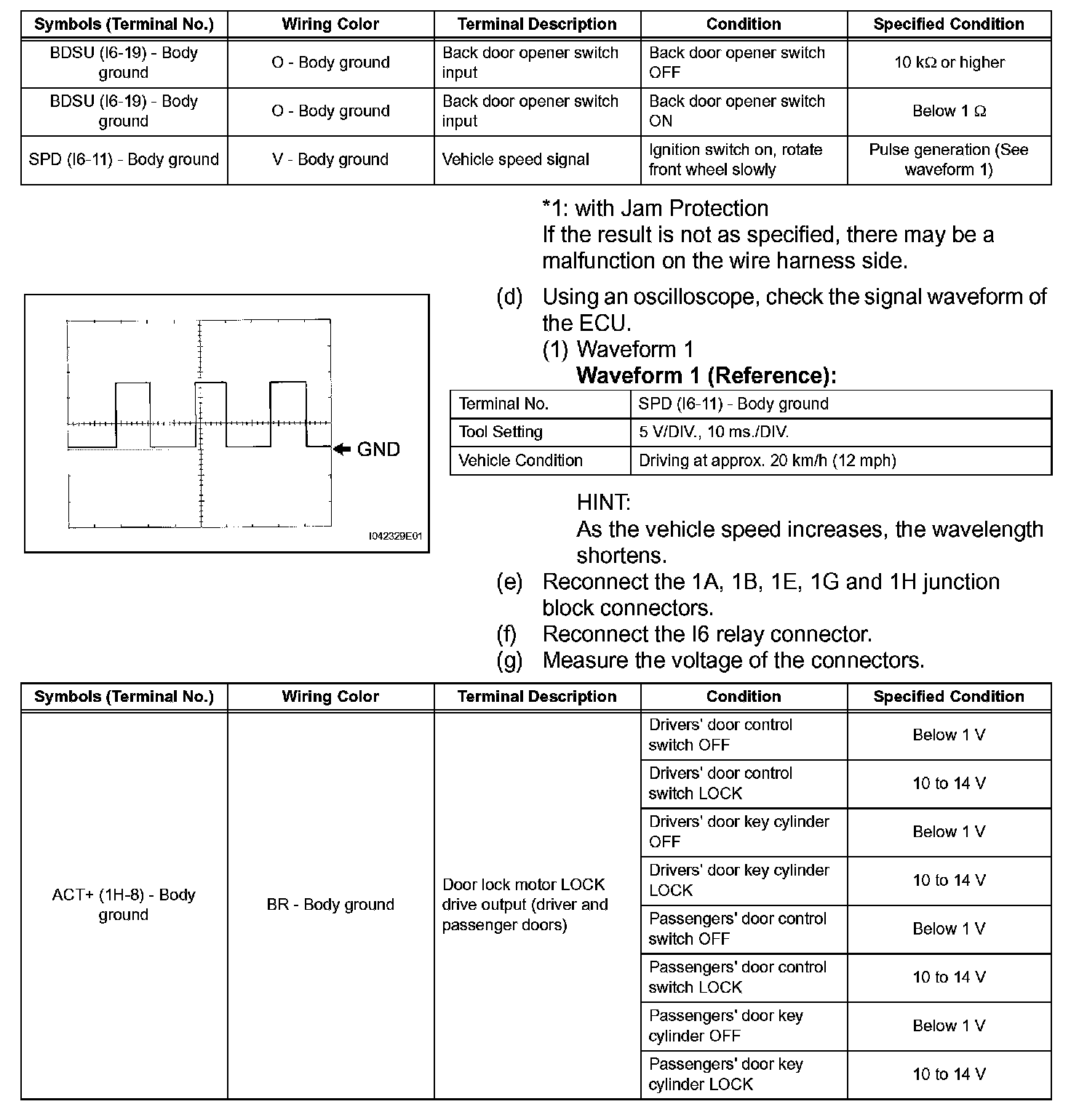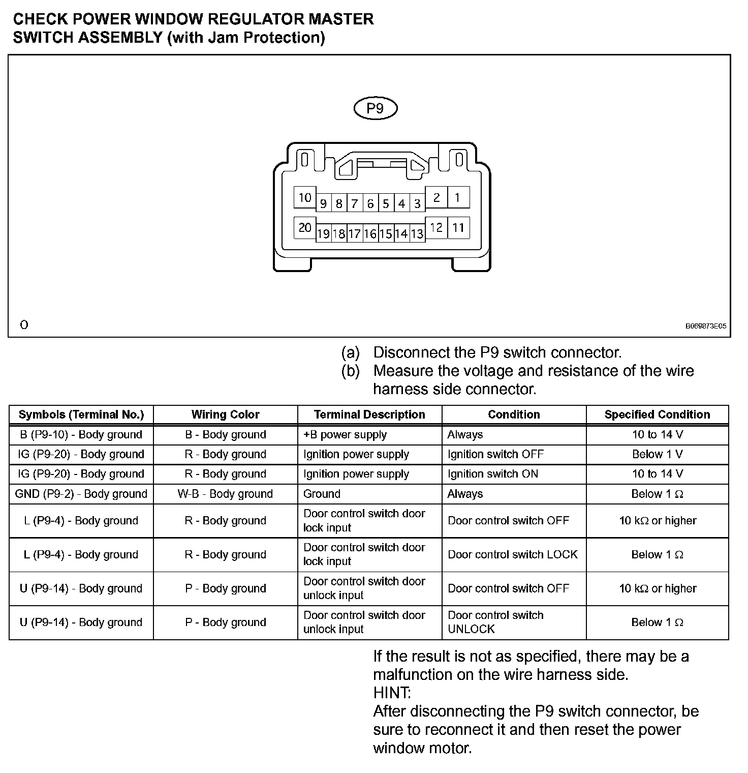 Terminals Of Control Module/Pinouts-Check Power Window Regulator Master Switch Assembly (With Jam Protection):