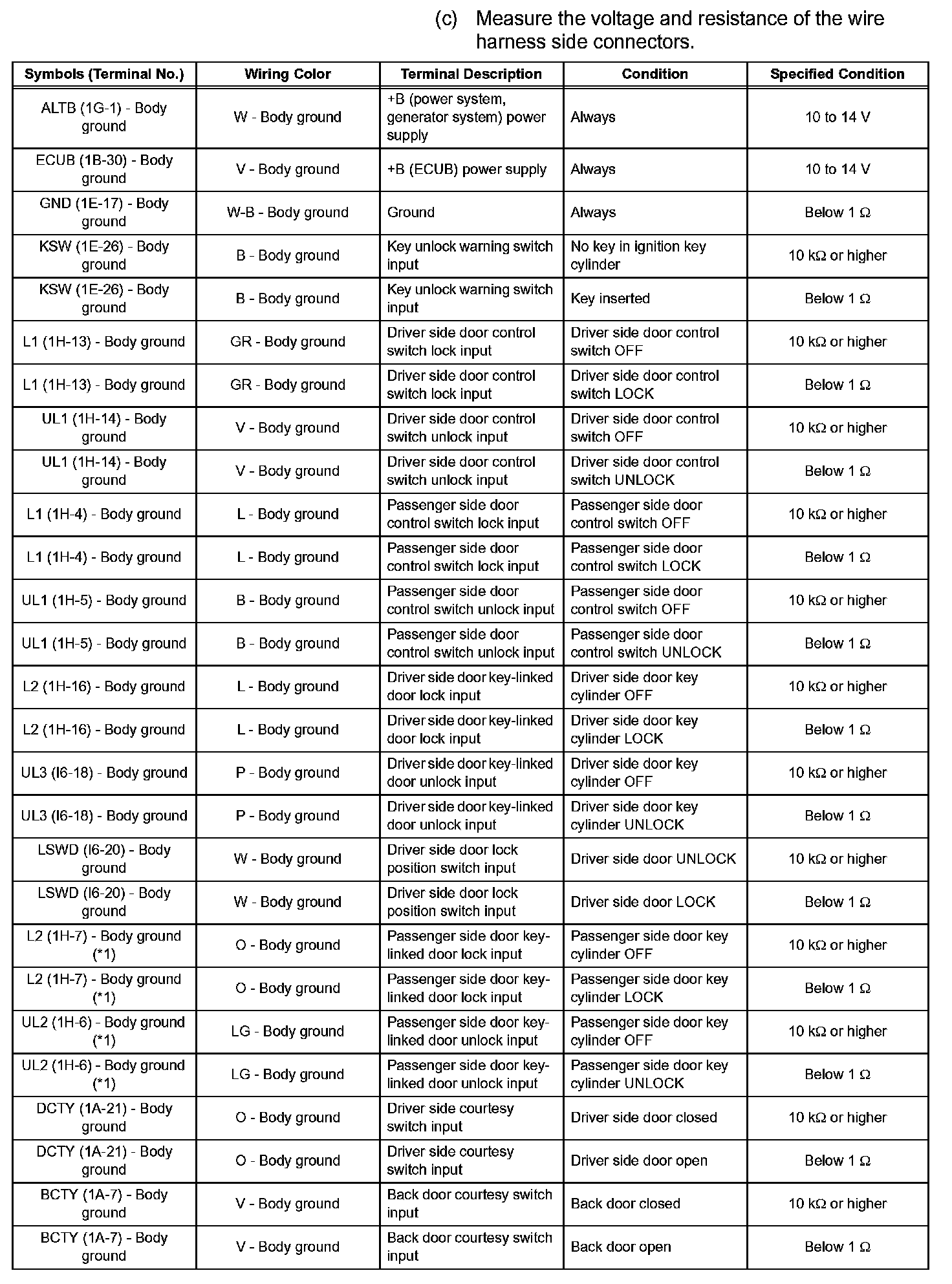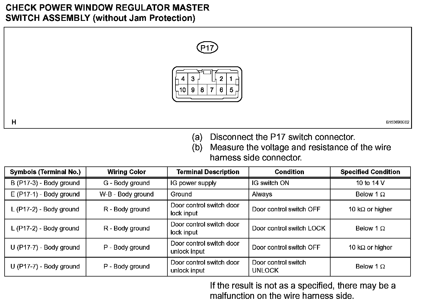 Terminals Of Control Module/Pinouts-Check Power Window Regulator Master Switch Assembly (Without Jam Protection):