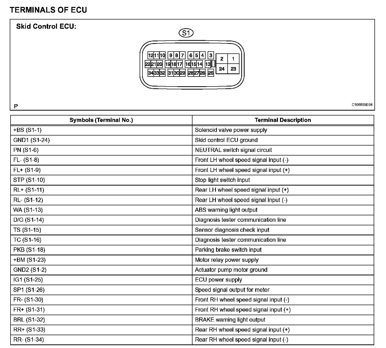 Terminals Of Control Module/Pinouts: