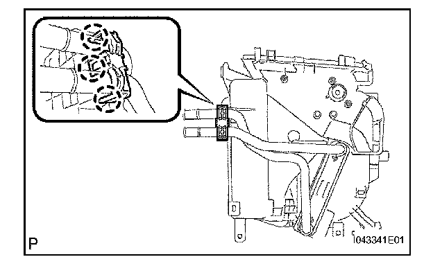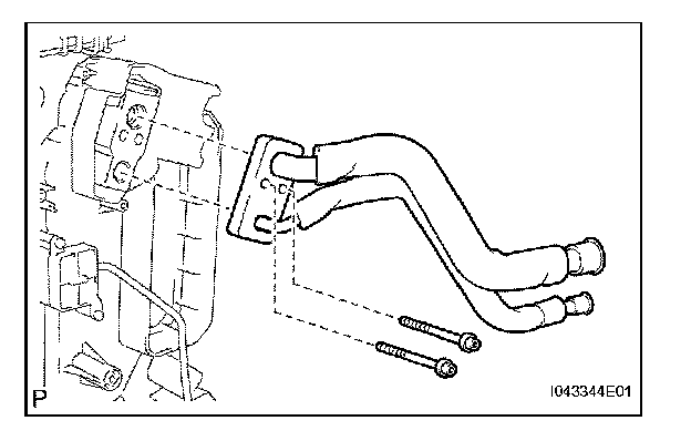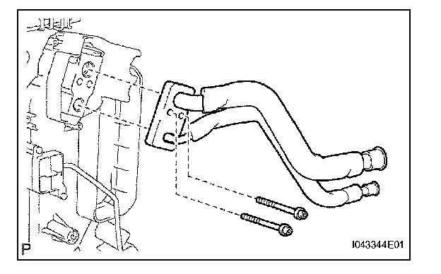 b. Using a 4 mm hexagon wrench, install the air conditioning tube with the 2 hexagon bolts.