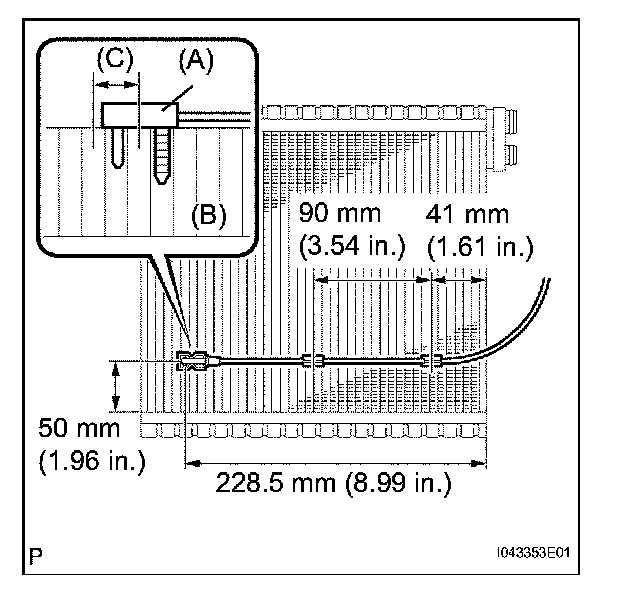 NOTE: If reusing the evaporator, DO NOT insert the sensor to the position that it had been inserted before. Insert it between position C shown in the illustration.