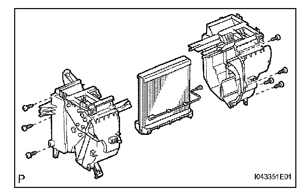c. Install the cooler evaporator on the heater case with the 7 screws.