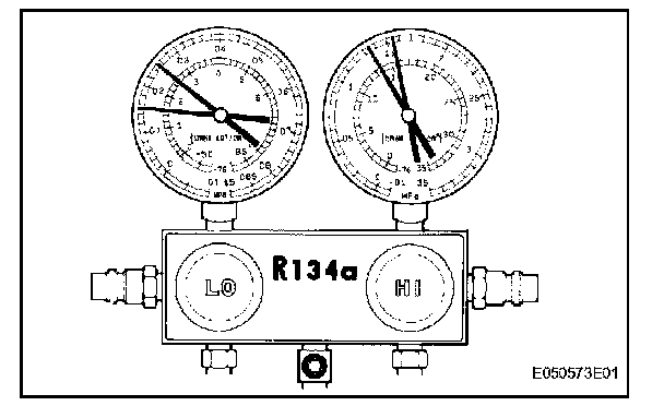 1. INSPECT REFRIGERANT PRESSURE WITH MANIFOLD GAUGE SET