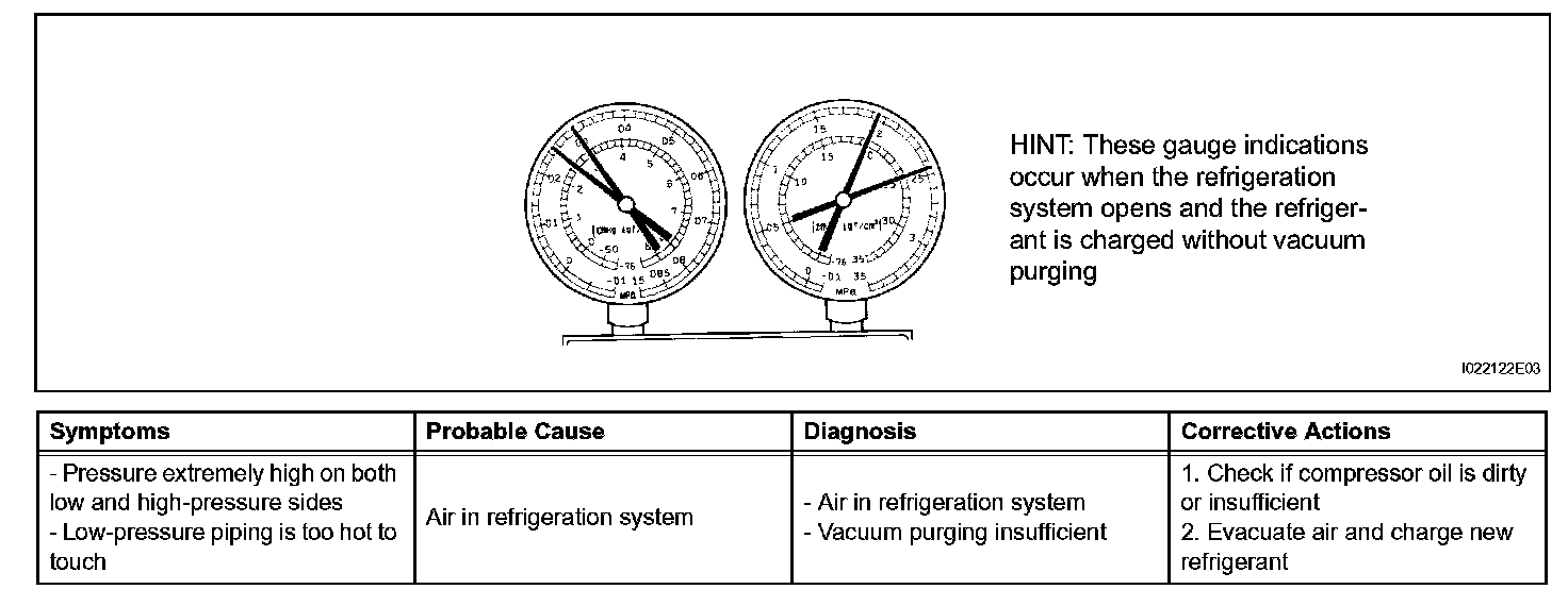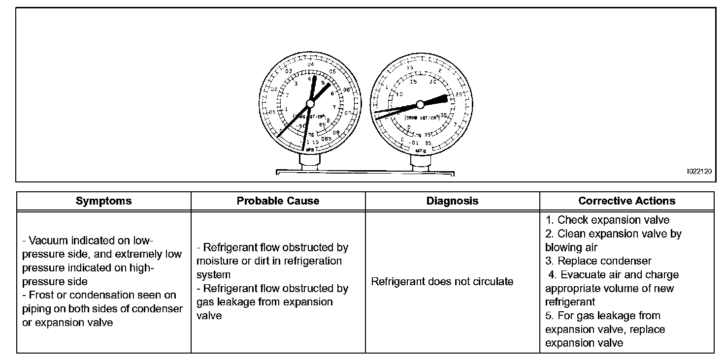 7. The A/C system does not function due to air in the refrigeration system.