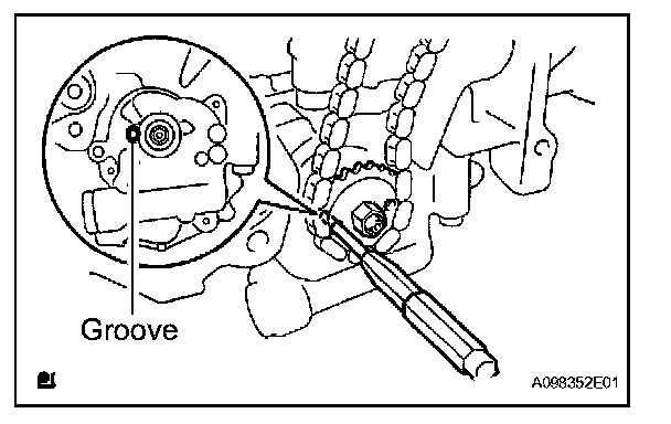 (g) Align the adjusting hole of the oil pump drive shaft gear with the groove of the oil pump.