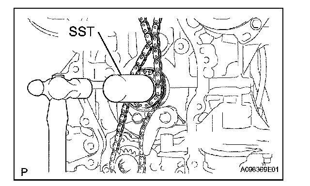 (c) Using SST and a hammer, tap in the crankshaft timing sprocket.