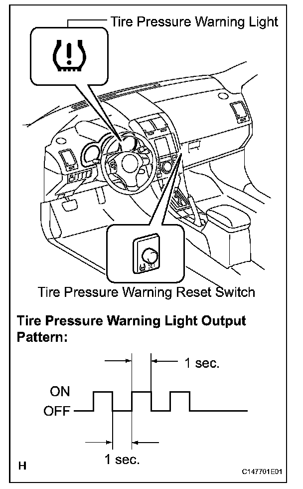 (f) Check that the tire pressure warning light blinks 3 times (1 second ON, 1 second OFF).